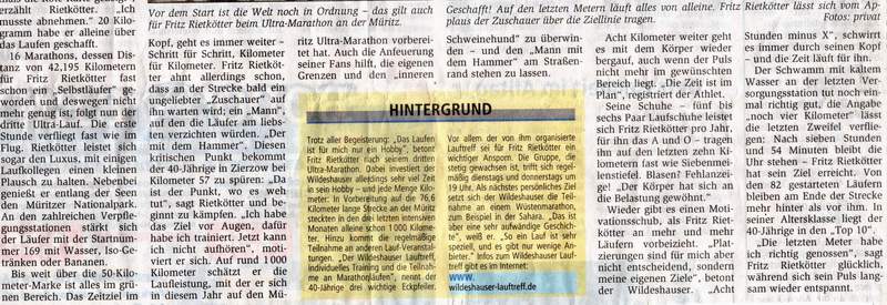 Wildeshauser Zeitung vom 02.07.11 - Bericht zur Teilnahme am 100km UltraMarathon in Biel: